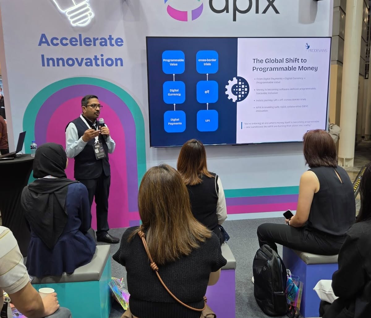 Deepak Mishra (Founder & CEO, Prodevans Technology) presented the CBDC Sandbox & Use Cases on the APIX Platform, highlighting how the CBDC eRupee powered by Aadhaar identity is set to redefine trust, transparency, and efficiency in financial ecosystems. Prodevans continues to push boundaries—bringing cutting-edge digital payment solutions to the global stage.